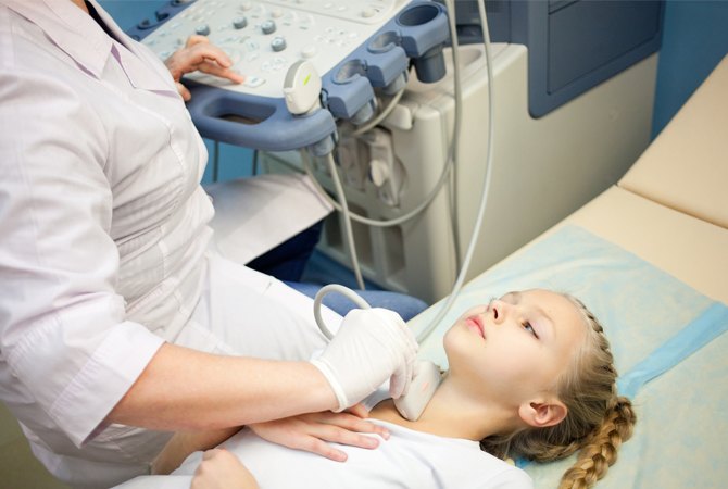 В ходе диагностики специалисты должны дифференцировать РЩЖ с доброкачественными новообразованиями (в частности, аденомой и узловым зобом), с острыми и хроническими тиреоидитами. При этом решающее значение будет иметь УЗИ и цитологическое исследование пунктата подозрительного узла. Часто у ребенка отсутствуют жалобы, и узлы в щитовидной железе обнаруживаются во время диспансеризации при проведении УЗИ щитовидной железы. Впрочем, давайте по порядку.